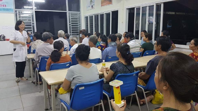 ác sĩ Nguyễn Thị Hoa tư vấn cho bệnh nhân về chế độ dinh dưỡng tại pḥng ăn
