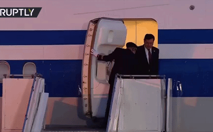 Các thành viên trong đội tiêu binh đã chuẩn bị sẵn sàng trong tư thế chào, và quân nhạc đã nổi lên khi người đàn ông mặc vest đen bước xuống từ máy bay. Thế nhưng, đó không phải là ông Tập, mà chỉ là một quan chức trong đoàn hộ tống của Trung Quốc.
