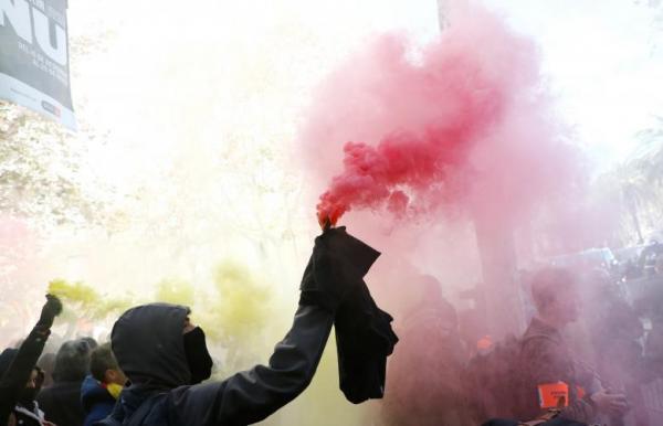 Bất ổn lại bùng phát tại Catalonia khi hàng nghìn người ủng hộ phong trào ly khai đổ xuống các con phố tại Barcelona hôm 21/12. Người biểu tình phản đối việc Thủ tướng Tây Ban Nha Pedro Sanchez tổ chức cuộc họp chính phủ tại thành phố này, đồng thời đòi Madrid trả tự do cho các lãnh đạo phe ly khai đang bị giam giữ. Ảnh: Reuters.