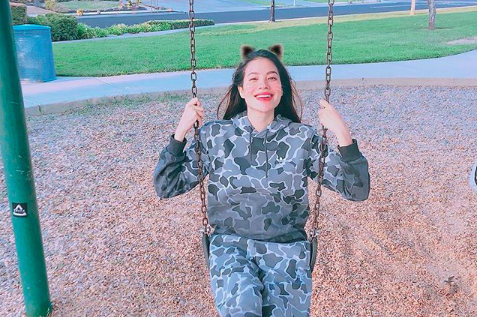 Trong bức ảnh mới nhất, người đẹp diện quần áo thể thao, ngồi trên xích đu với vẻ mặt tươi cười, rạng rỡ. Người đẹp cũng đặc biệt chú thích cho bức ảnh: "Bình yên một thoáng" và đặt dòng hashtag "Life is good" (Tạm dịch: Cuộc đời này thật đẹp).