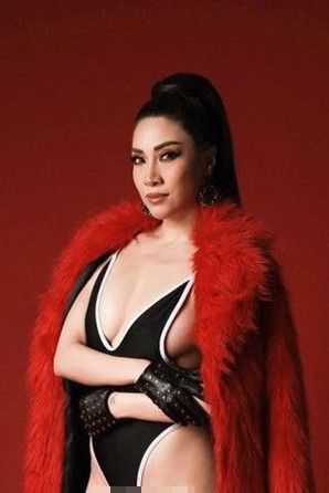 Cách đây không lâu, Pha Lê cũng từng gây sốt dư luận khi chụp hình tạo dáng với trang phục với 2 màu đỏ - đen huyền bí và phần hông khoét cao "ngất ngưởng".