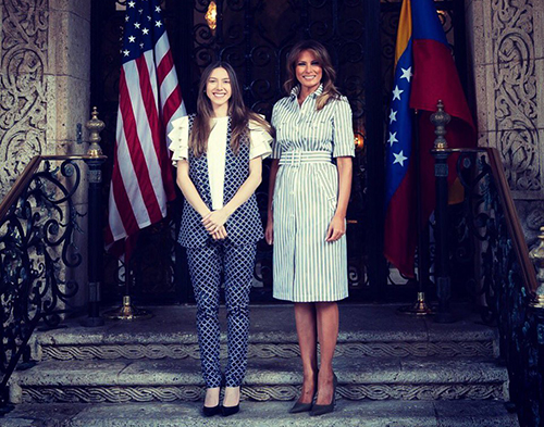 Nhà Trắng cho hay phu nhân Tổng thống Trump đã bày tỏ sự lo ngại về tình cảnh của người dân Venezuela, trong đó có trẻ em, những người đang hứng chịu cuộc khủng hoảng về cả kinh tế và chính trị ở nước này, thiếu thốn cả về nhu yếu phẩm lẫn các dịch vụ như điện. Bà cũng tái khẳng định cam kết của chính quyền Mỹ ủng hộ lãnh đạo mới của Venezuela.