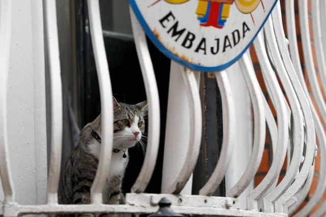 Một người trong nhóm hỗ trợ pháp lý của ông Assange cho biết, ông Assange đã gửi chú mèo cho một người họ hàng nuôi sau khi đại sứ quán Ecuador cảnh báo đưa con vật này đến trại thú nuôi bởi vì lối sống quá tự do của nó bên trong đại sứ quán.