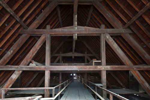 Các thanh gỗ lớn trên mái ṿm nhà thờ Đức Bà Paris được cho là làm từ những cây gỗ 300-400 năm tuổi. Ảnh: CNN.