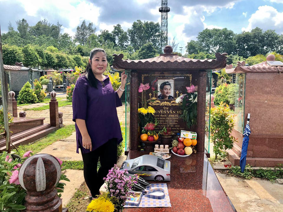 Nghệ sĩ Hồng Vân đến thăm mộ cố nghệ sĩ Anh Vũ vào sáng nay.