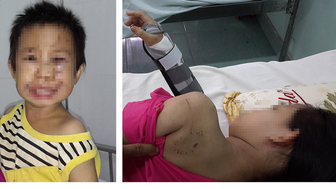 Khi đi qua trước cổng thì bị con chó của nhà hàng xóm đang bị xích cạnh đó bất ngờ lao đến cắn tới tấp vào mặt cháu Huy. Thấy vậy, cháu Ánh liền hô hoán và chạy đến kéo em thoát ra ngoài thì bị con chó cắn liên tiếp vào người và tay.