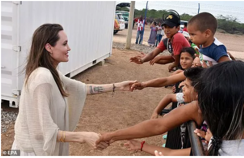 Angelina Jolie với tư cách là đặc phái viên Văn phòng Cao ủy Liên hợp quốc về người tị nạn (UNHCR), đã có chuyến thăm người tị nạn ở biên giới giữa Colombia và Venezuela, nơi có hàng ngàn trẻ em Venezuela tị nạn.