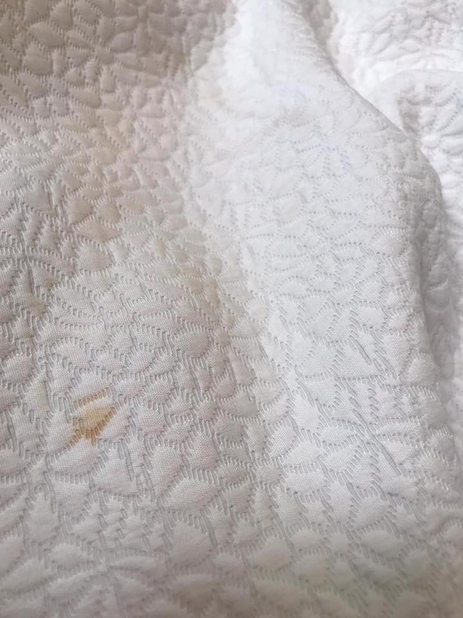 Chiếc váy trắng nhưng đã bị ngả màu vàng, ố, nhiều vết bẩn. Cảm thấy chiếc váy không xứng đáng với số tiền 500k, N.N đã nhắn tin thì Hà Phương giải thích: "Do chiếc váy màu trắng và chị để cũng lâu rồi, một năm trời rồi nên em giặt đi nhé. Chị cũng chỉ thanh lý 500 nghìn".