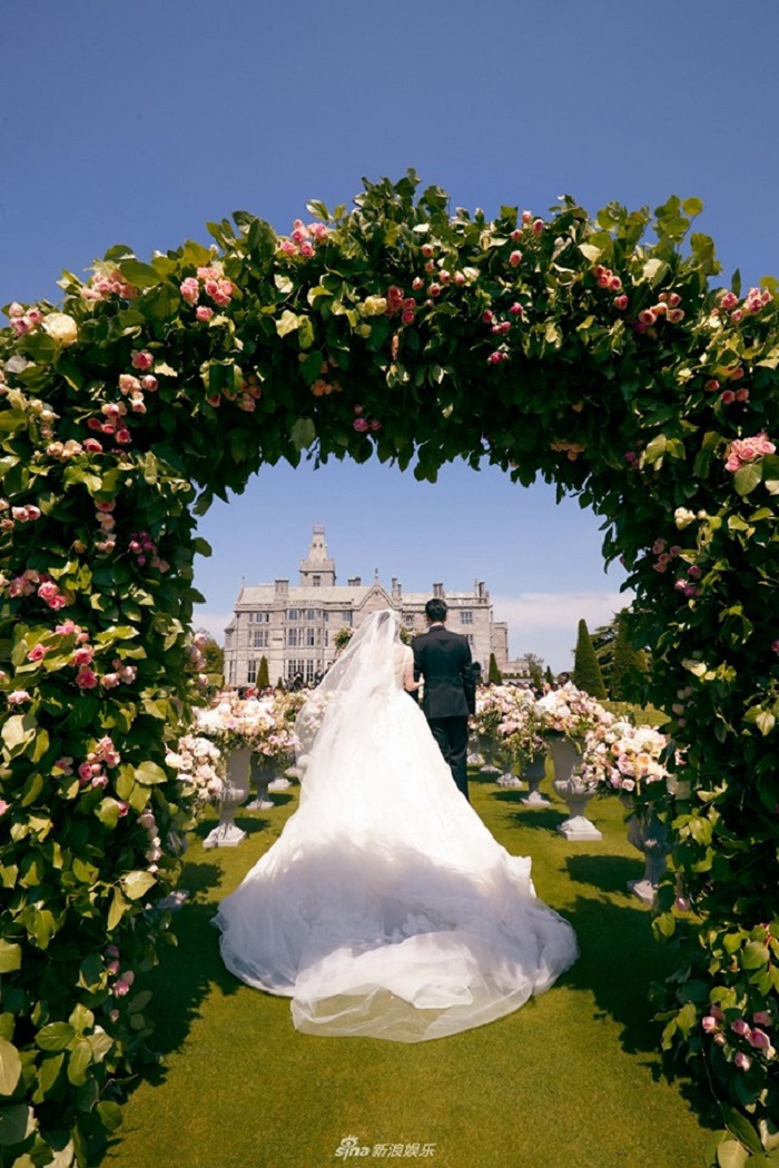 Chú rể Trương Nhược Quân cưỡi ngựa đến lễ cưới. Lễ cưới của cặp đôi tiên đồng ngọc nữ showbiz Hoa ngữ diễn ra tại một tòa lâu đài tráng lệ ở Ireland với danh sách khách mời toàn những gương mặt đình đám như vợ chồng Triệu Lệ Dĩnh - Phùng Thiệu Phong, Thẩm Mộng Thần, Tỉnh Bách Nhiên...