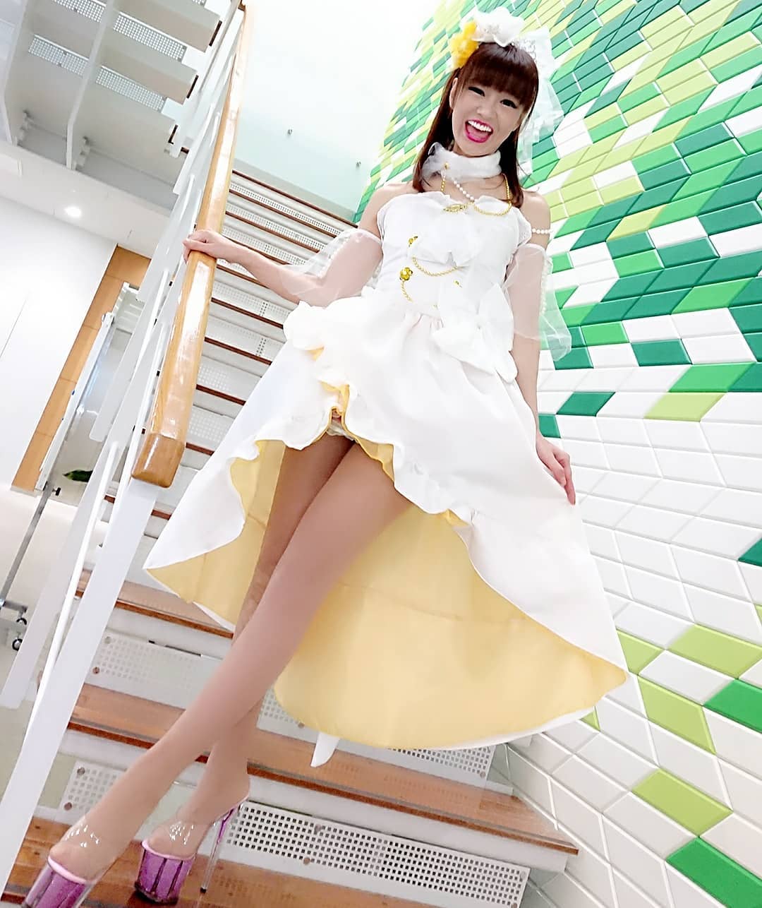 Sayuri Ozaki thích tạo hình nữ sinh anime và đồng thời trông khá bắt mắt hấp dẫn trong những chiếc áo nhiều màu tươi sáng cùng với váy ngắn.