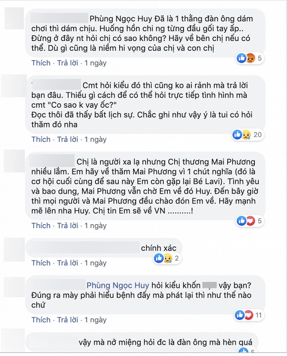 Phùng Ngọc Huy bình luận hỏi thăm đến Mai Phương những khiến nhiều người phẫn nộ. Nhưng Ốc Thanh Vân cũng lên tiếng bày giải vì khó khăn nên anh không về được.