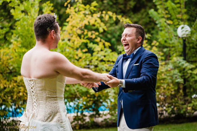 Nhiếp ảnh gia Raph Nogal đã bắt được khoảnh khắc vui nhộn khi Tyler mở mắt và phá lên cười vì nhìn thấy anh trai mình trong bộ váy cưới. Các bức ảnh sau đó nhanh chóng đã gây sốt trên mạng xã hội.