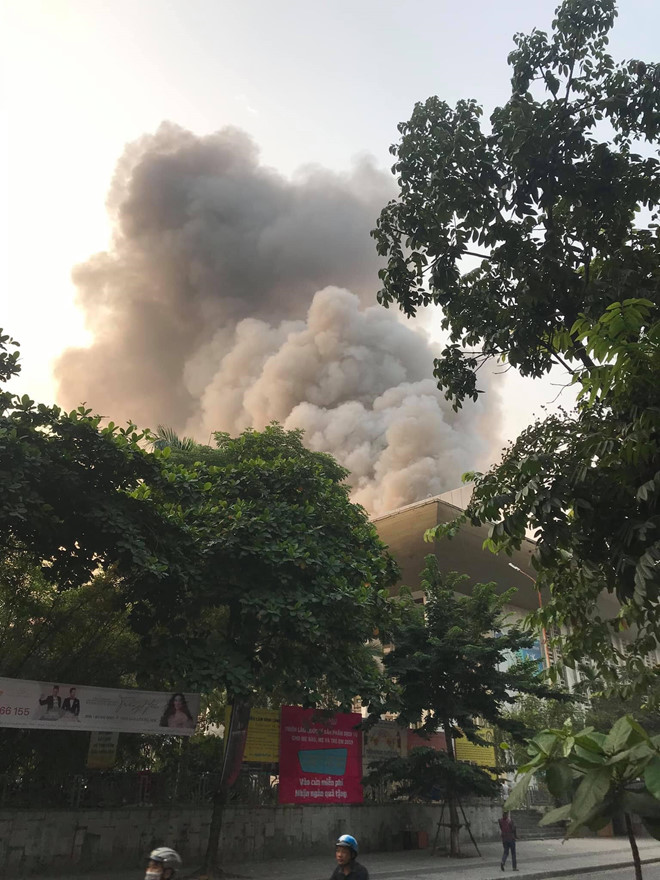 Khói bốc lên từ Cung Văn hóa Việt Xô vào sáng 28/9. Ảnh: FB.