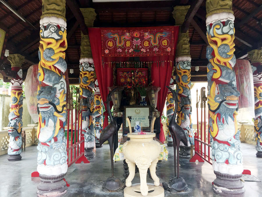 Bên trong nhà tưởng niệm, biển công nhận di tích lịch sử cấp quốc gia ở giữa. Ảnh: Trần Chánh Nghĩa.