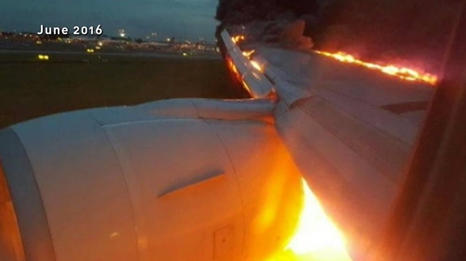 Một hành khách nam hét lên "Mở cửa đi!". Song bất chấp sự náo loạn bên trong, cơ trưởng chuyến bay đă b́nh tĩnh thông báo với phi hành đoàn: "Bất luận bạn làm việc ǵ, đừng mở cửa". Thực tế là cơ trưởng đă liên hệ với đội cứu hỏa trên mặt đất. Trong t́nh trạng đường băng và phần cuối máy bay đang bị bao phủ bởi xăng dầu, việc mở cửa có thể biến thành thàm họa ngay lập tức.