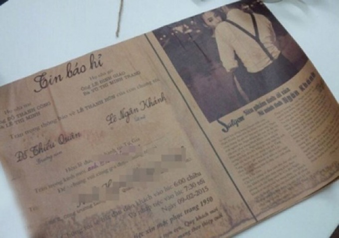 Nhiều sao Việt lựa chọn thiệp cưới cực kỳ độc, chẳng giống ai. Thiệp cưới của Ngân Khánh là tờ nhật báo theo phong cách năm 1950, thiệp của nhạc sĩ Nguyễn Văn Chung là đĩa CD...