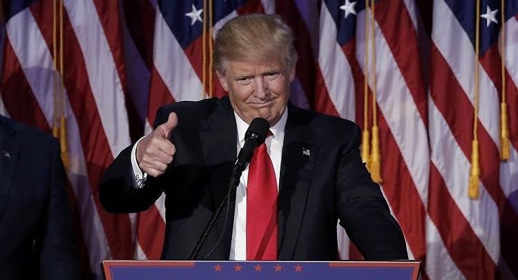Tổng thống Donald Trump phát biểu khi giành chiến thắng trong cuộc bầu cử Tổng thống Mỹ 2016. Ảnh: Reuters.