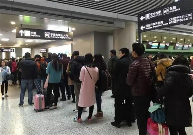 Cảnh xếp hàng ở sân bay Phố Đông, Thượng Hải. Ảnh: ShanghaiDaily.