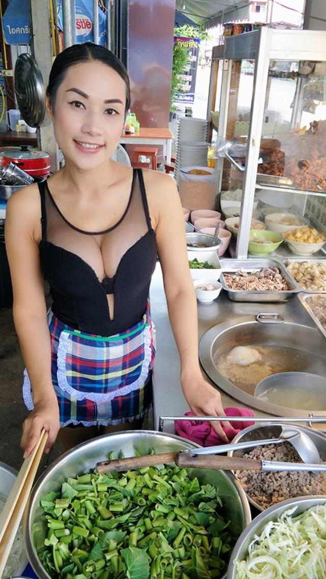 Quán mỳ nhỏ nhưng lúc nào cũng tấp nập khách, nguyên nhân là bởi cô chủ luôn mặc những bộ đồ khêu gợi như thế này.