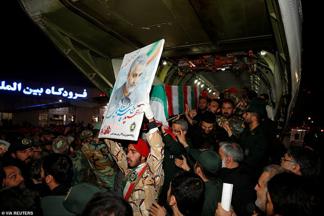 Theo Daily Mail, linh cữu của những công dân Iran thiệt mạng trong vụ Mỹ không kích tại Baghdad, Iraq - trong đó bao gồm thi thể của Thiếu tướng Quassem Soleimani, người đứng đầu lực lượng Quds của IRGC - đã được đưa về quê hương trên một chiếc máy bay dân dụng.