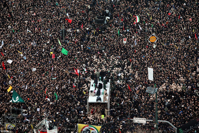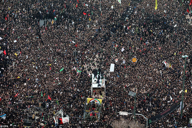 Hàng triệu người đã tập trung trên đường phố ở Ahvaz, Mashhad, và Tehran để tiễn đưa ông Soleimani trên chặng đường cuối cùng. Ảnh: EPA