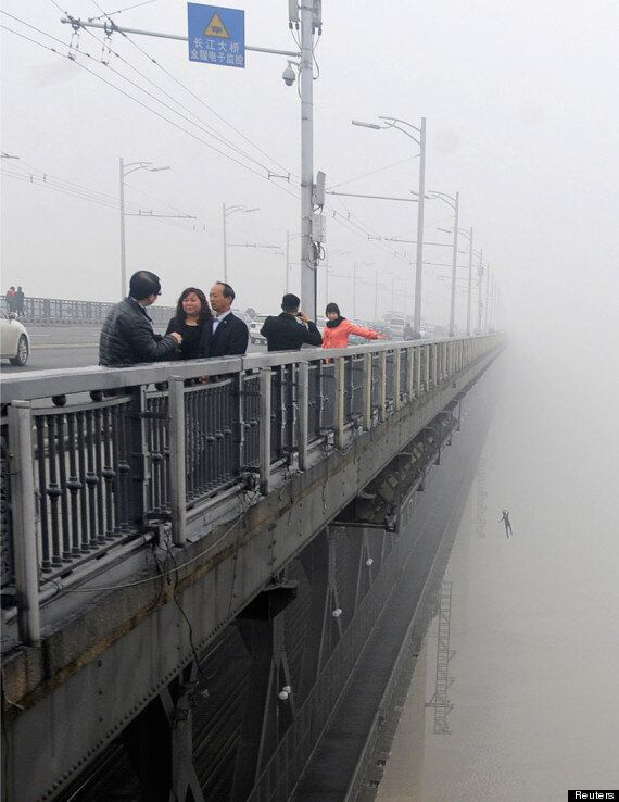 Vào năm 2013, 1 phóng viên của tờ Hubei Daily đã có mặt tại cầu Vũ Hán bắt qua sông Trường Giang để tác nghiệp cho bài viết về tình trạng ô nhiễm không khí ở xứ sở tỷ dân. Khi đó, anh bất ngờ nghe thấy tiếng người đi đường hét lớn: "Có người nhảy sông". Nhìn về phía nhân chứng ấy chỉ thì phóng viên này đã nhanh tay chụp được bức hình người thứ 2 từ cầu nhảy xuống. Bức ảnh chụp đúng lúc người kia đang rơi tự do trong không trung trước khi biệt tăm dưới làn nước lạnh của con sông Trường Giang khiến ai nhìn vào cũng không tránh khỏi cảm giác lạnh lẽo.