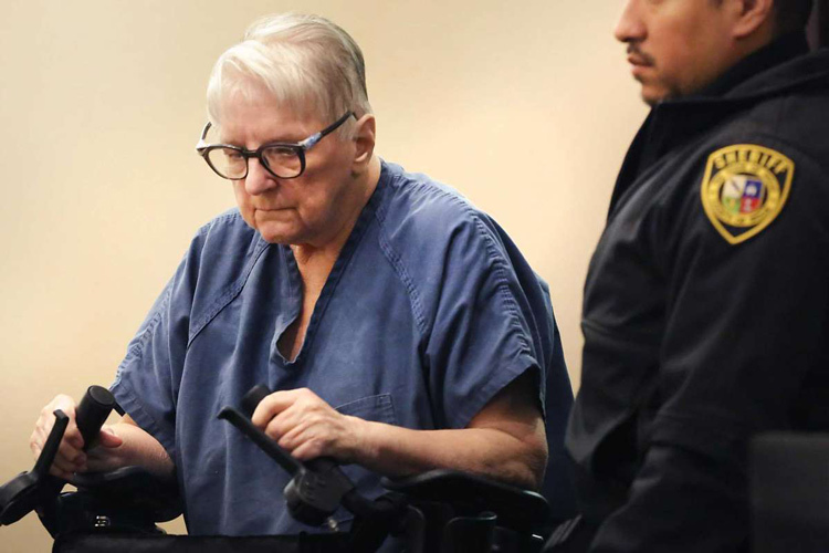 Ở tuổi già, Genene phải ngồi xe lăn khi ra ṭa. Ảnh: Bob Owen/San Antonio Express-News.