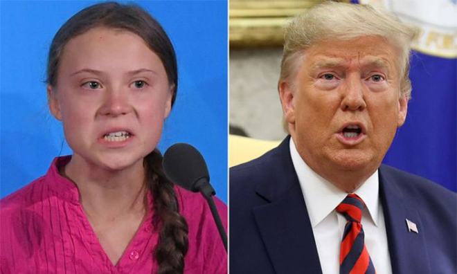 Khi nhà hoạt động môi trường nhí được tạp chí Time chọn là nhân vật của năm 2019, Trump cũng mỉa mai lựa chọn này. "Thật lố bịch. Greta nên giải quyết vấn đề kiểm soát cơn giận dữ của mình, sau đó đi xem một bộ phim kiểu cũ với bạn. Thư giãn đi nào Greta, thư giãn đi", Trump đăng Twitter tháng 12/2019.