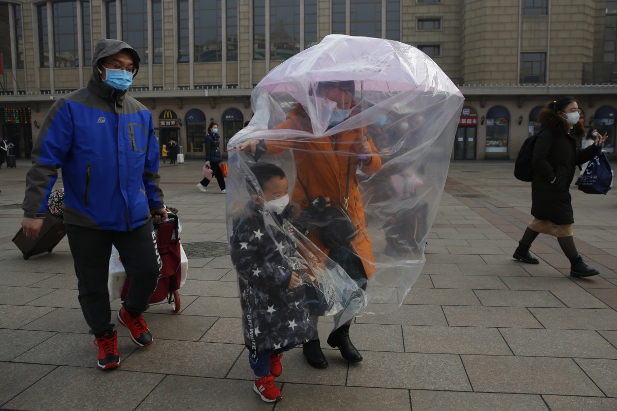 Một gia đình đeo khẩu trang, mặc áo mưa nhằm chống virus Corona lây nhiễm tại Trung Quốc (ảnh: SCMP)