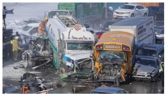 Ngày 19/2, do tuyết rơi mù mịt đã khiến các xe đụng dồn cục kéo dài 1 km từ bờ Nam sông St. Lawrence lên quốc lộ 15 ở TP Montreal - Canada.