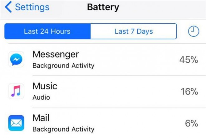 Truy cập Cài đặt (Settings) chọn mục Pin (Battery) sau đó kéo xuống dưới để xem danh sách tiêu hao năng lượng của các ứng dụng bạn thường sử dụng.