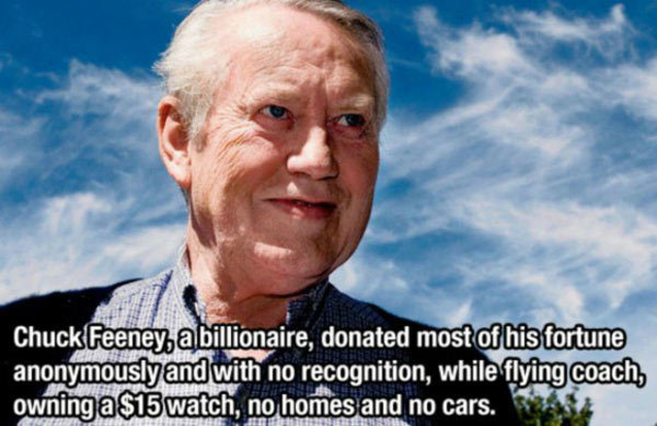 Hành động cao cả của Feeney là động lực cho nhiều người, là nguồn cảm hứng cho cả những người rất giàu có và nổi tiếng, cũng hay làm từ thiện như Bill Gates và Warren Buffett.