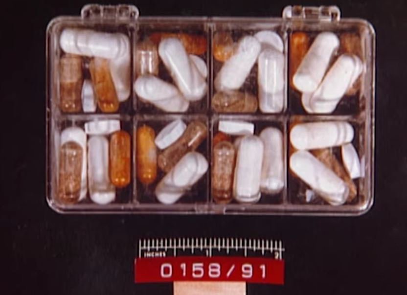 Với t́nh tiết này, cảnh sát tới nhà thu giữ toàn bộ viên thuốc tại đây và đưa đi giám định. Kết quả cho thấy đa số thuốc là vitamin, nhưng hai viên trong đó chứa bari cacbonat – chất độc thường được dùng để sản xuất thủy tinh.