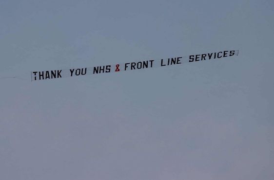 Biểu ngữ cảm ơn nhân viên y tế tại Dịch vụ Y tế Quốc gia ở Liverpool, Anh. Ảnh: Reuters
