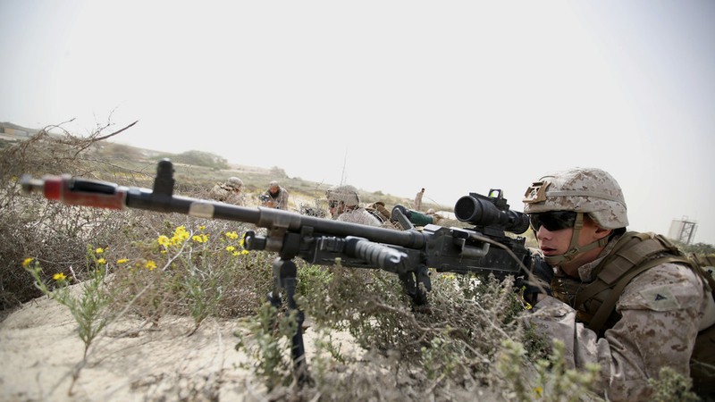 Một thành viên thủy quân lục chiến Mỹ trong một cuộc tập trận giữa hải quân Mỹ và Saudi Arabia tại cảng quân sự Ras Al Ghar thuộc TP Jubail, tỉnh Eastern của Saudi Arabia hồi tháng 2. Ảnh: REUTERS