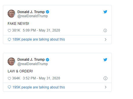 The Times reported that some aides had pressed Trump to do a national address about the protests on Sunday, but he decided to share his thoughts on Twitter instead: