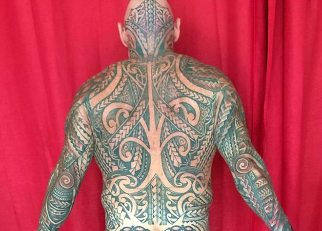Sau 3 năm từ ngày xăm hình đầu tiên, trên cơ thể lực sĩ đã kín hình