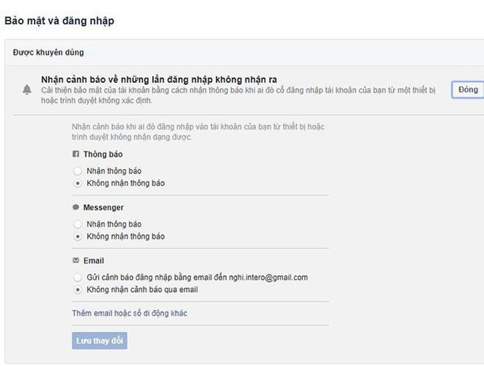 Tính năng cảnh báo đăng nhập từ địa điểm, thiết bị khác cũng có thể dễ dàng cài đặt trên ứng dụng Facebook bằng cách truy cập mục “Cài đặt”, chọn “Bảo mật và đăng nhập”. Sau đó người dùng tìm đến mục “Nhận cảnh báo về những lần đăng nhập không nhận ra”