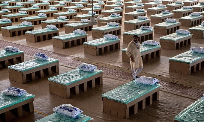 Ấn Độ dùng giường bệnh bằng bìa carton. Hàng nghìn giường bệnh làm bằng bìa carton được tăng cường cho các bệnh viện dã chiến Ấn Độ trong bối cảnh số ca Covid-19 đã vượt 500.000.