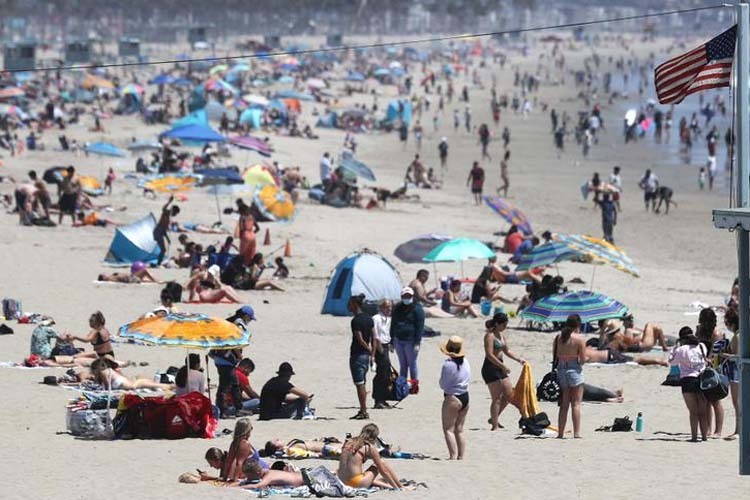 Người dân Mỹ đổ ra bờ biển ở Santa Monica, California ngày 2/7. Ảnh: Reuters.