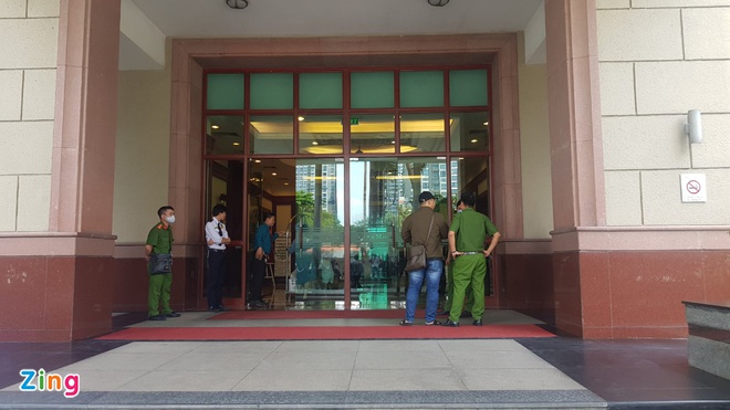 Công an phong tỏa, khám xét nơi ở của ông Trần Vĩnh Tuyến tại ṭa nhà The Manor. Ảnh: Lê Trai.