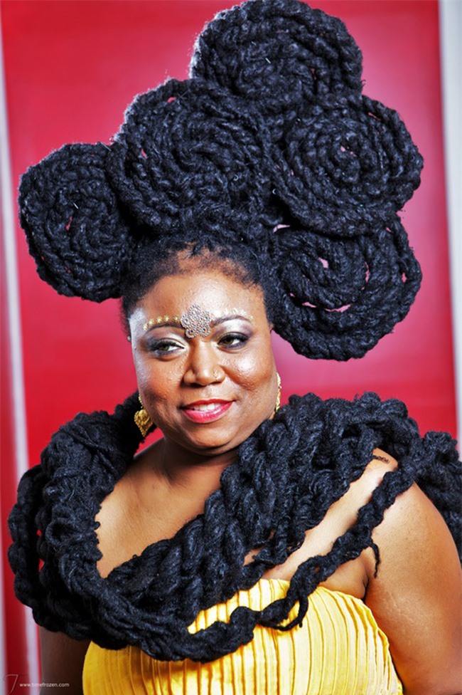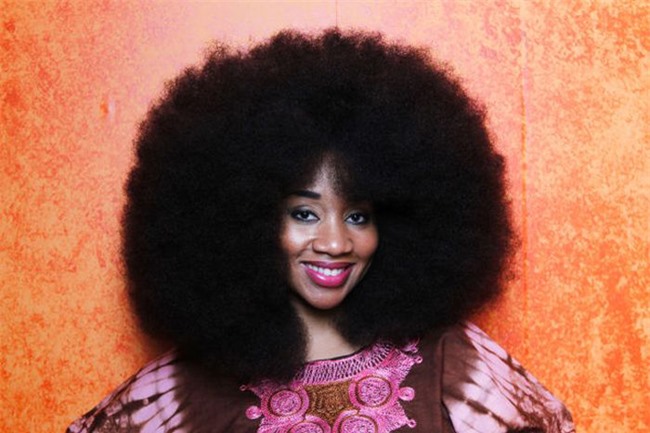 Ngược lại với những mái tóc dài, cô Aevin Dugas tới từ Louisiana, Mỹ lại sở hữu bộ tóc xù tự nhiên có chu vi 1,32m.