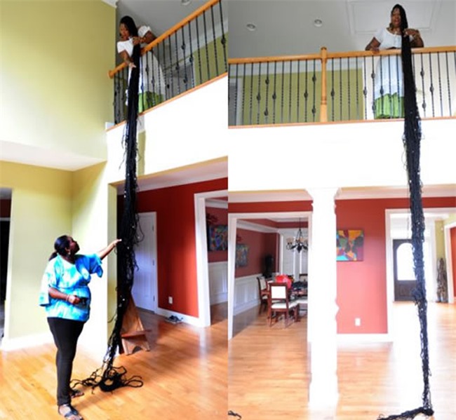 Mái tóc dài nhất hành tinh được ghi vào kỷ lục Guinness Thế giới thuộc về cô Asha Mandela, sống tại Atlanta, bang Georgia, Mỹ.