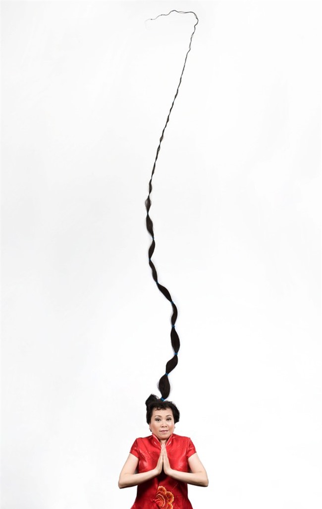 Cô Xie Qiuping tới từ Quảng Tây, Trung Quốc được Guinness công nhận là người có mái tóc dài và mượt nhất với chiều dài 5m63.
