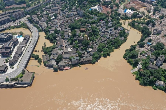 Mực nước tại Từ Khí Khẩu, cổ trấn hơn 1.000 năm tuổi tại quận Sa Bình bên bờ sông Gia Lăng, một nhánh của sông Trường Giang chảy qua Trùng Khánh, lên tới 184,7 mét, vượt báo động hơn 3 mét. Nhiều tuyến đường và hàng chục cửa hiệu ở vùng trũng gần sông chìm trong nước lũ.
