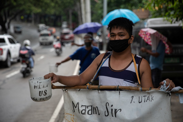 Những tài xế xe Jeepney mất kế sinh nhai trong dịch COVID-19 xin tiền tại thành phố Quezon, Metro Manila, Philippines ngày 30-7 – Ảnh: Reuters