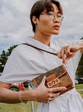 Trung Bao Le chụp ảnh cùng một chiếc túi xách hàng hiệu. Ảnh: Instagram/TrungBaoLe.