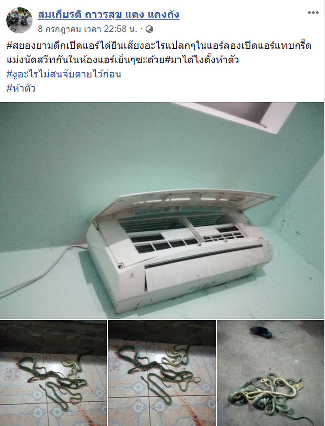Một người dùng Facebook với nickname Somkiat Thavorn Sukdangkangtang đã khiến mọi người rùng mình sợ hãi khi chia sẻ câu chuyện kinh hoàng xảy ra bên trong chiếc điều hòa ở ngay phòng ngủ của anh.