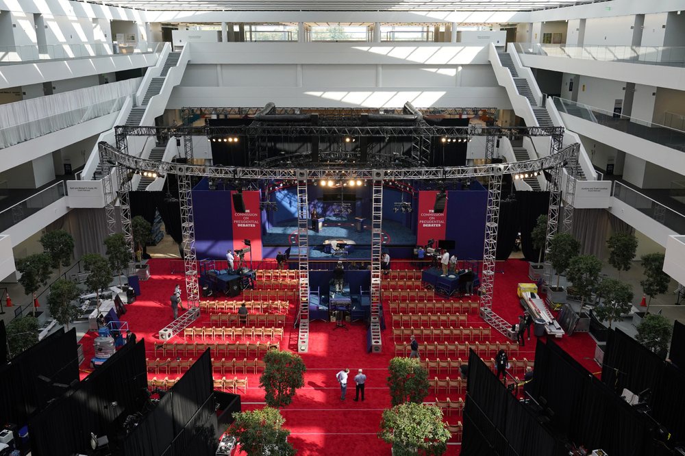 Địa điểm tổ chức cuộc tranh luận giữa ông Trump và ông Biden ở Cleveland, Ohio đang hoàn tất chuẩn bị. Ảnh: AP.Cơ hội lật ngược thế cờ của ông Trump