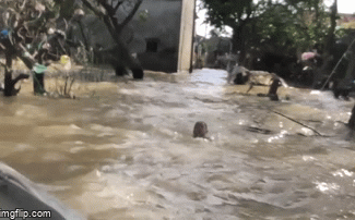 Old  Default Xót xa cảnh bé trai nỗ lực bơi trong dòng nước lũ lấy hàng cứu trợ